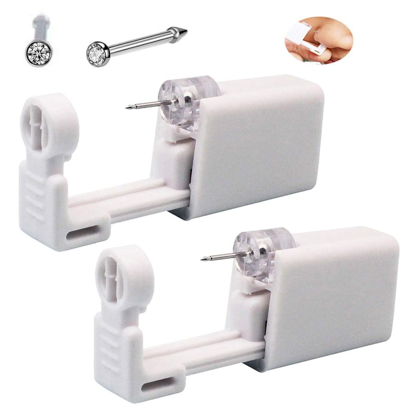 2 Pack Self Nose Piercing Gun Self Nose Piercing Gun Kit Safety Nose Piercing Gun Kit Tool with Nose stud (Silver)