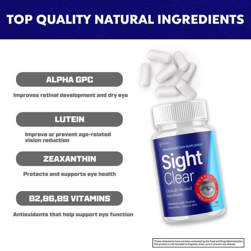- Sight Clear Supplement: All-Natural Ingredients, crafted with carefully selected, high-quality natural ingredients.