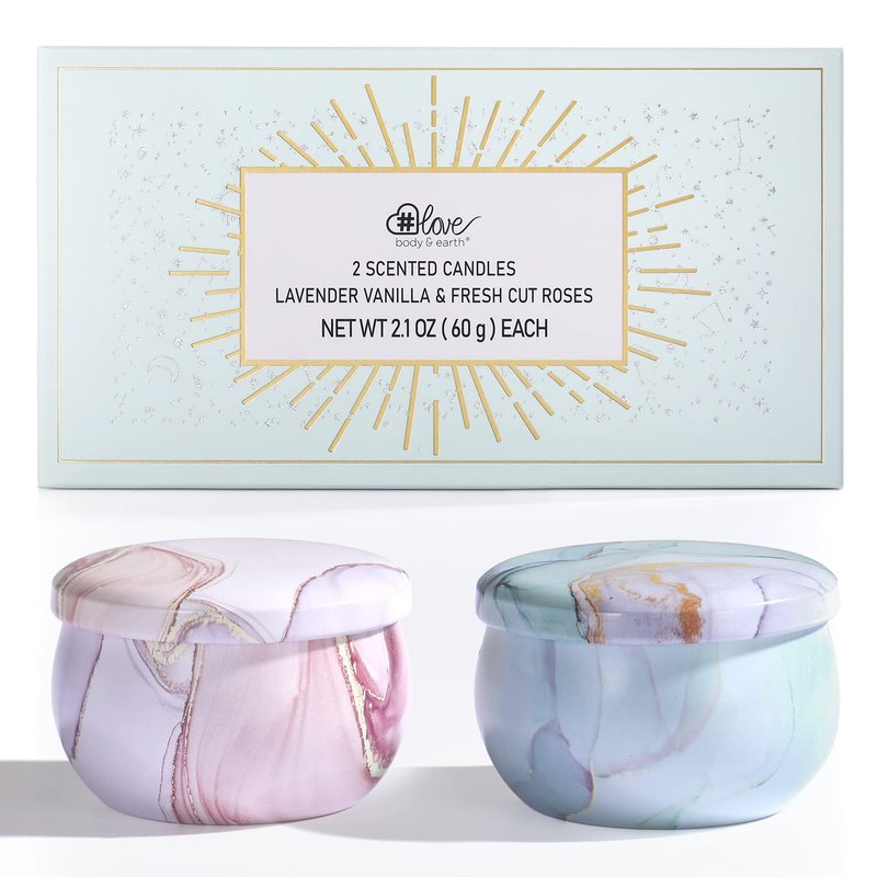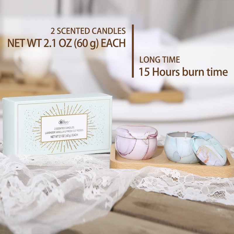 - Candles for home scented: This scented candles gift set includes 2 tins of scented candle: Lavender Vanilla & Fresh Cut Roses, The natural essential oils will leave you feeling calm refreshed and relieved of stress.