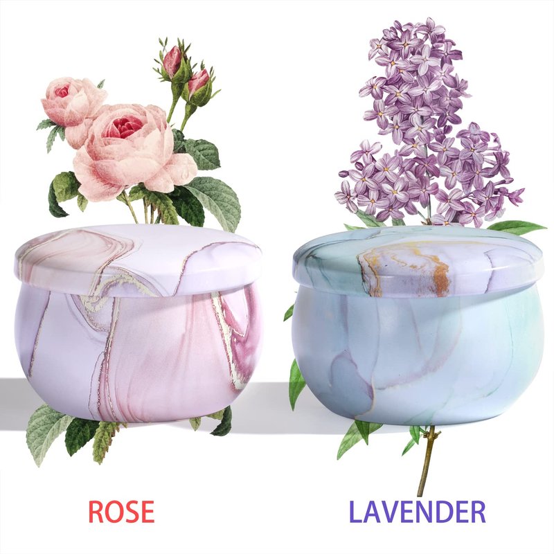 2-Pack Soy Candles Gift Set - Lavender, Vanilla, Rose Scents in Portable Tin Jars - For Home, Travel, Spa
