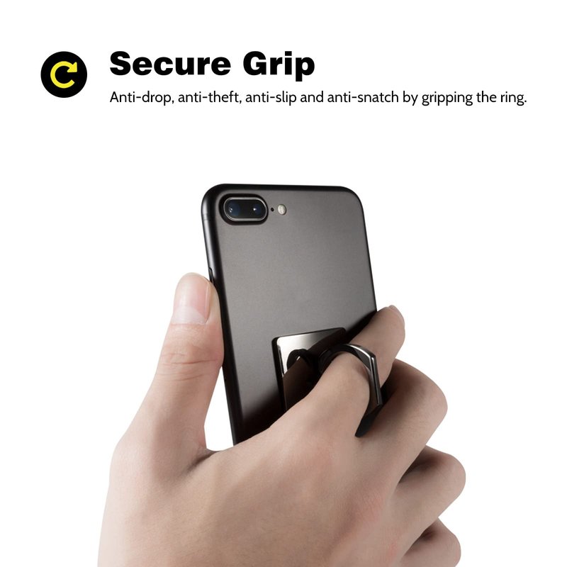 - [Strong Adhesive Finger Ring Grip] With the super strong 3M VHB adhesive pad, this cell phone finger ring grip clings to your smartphone (withstands 5kg gravity test) and prevents accidental drops and slips.3M adhesive pad can be applied to most smooth surfaces, including plastic, metal and TPU.