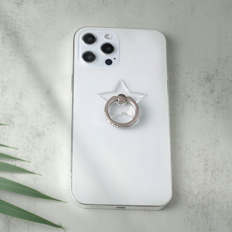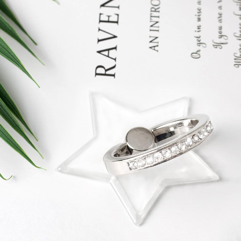 Transparent Five-pointed star Diamond Setting Cell Phone Ring Holder Stand,360 Degree Rotation and 180 Degree Adjustable Finger Ring Kickstand with Polished Electroplated Phone Grip