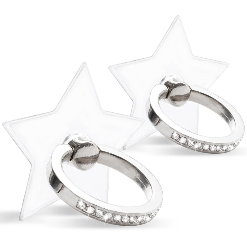 [2 Pack] Transparent Diamond Setting Cell Phone Ring Holder Stand,360 Degree Rotation and 180 Degree Adjustable Finger Ring Kickstand with Polished Electroplated Phone Grip (Pentagram)