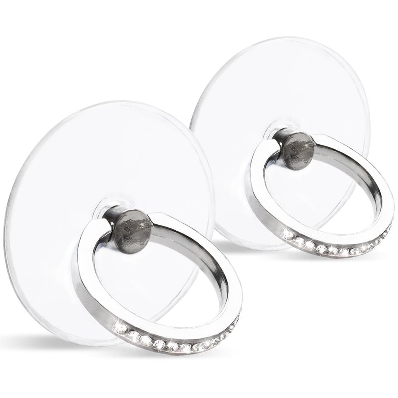 [2 Pack] Transparent Diamond Setting Cell Phone Ring Holder Stand,360 Degree Rotation and 180 Degree Adjustable Finger Ring Kickstand with Polished Electroplated Phone Grip (Round)