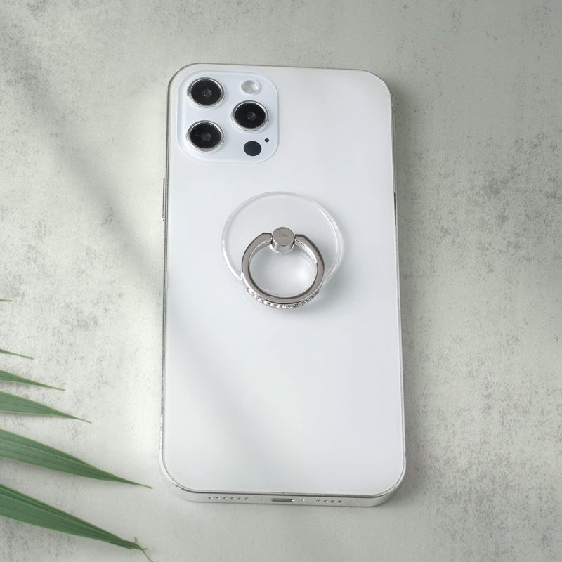 Transparent Round shape Diamond Setting Cell Phone Ring Holder Stand,360 Degree Rotation and 180 Degree Adjustable Finger Ring Kickstand with Polished Electroplated Phone Grip