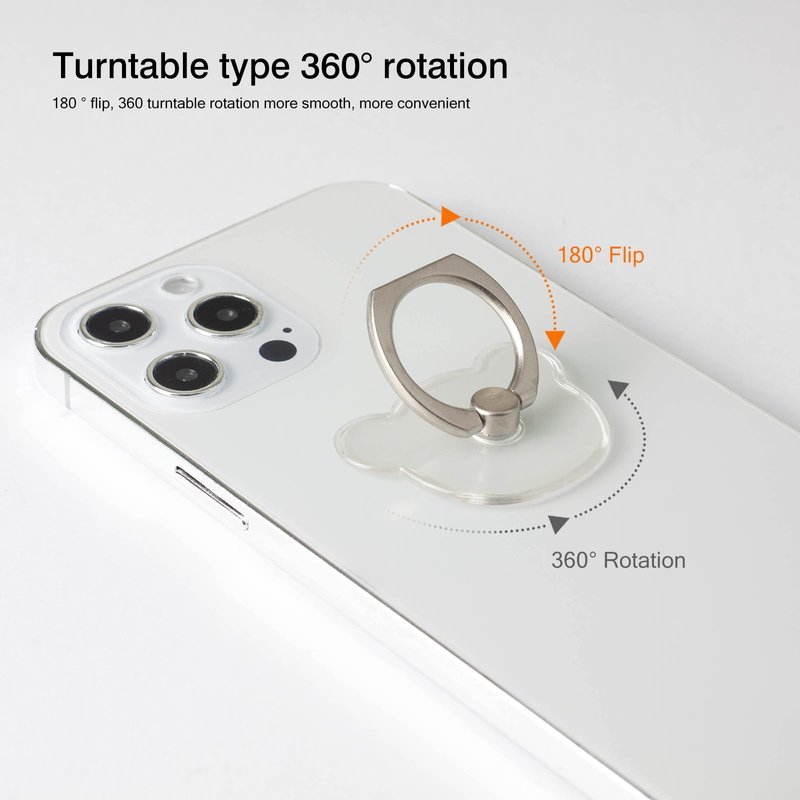 Transparent Bear head Finger Ring Cell Phone Ring Holder Stand,360 Degree Rotation and 180 Degree Adjustable Finger Ring Kickstand with Polished Electroplated Phone Grip