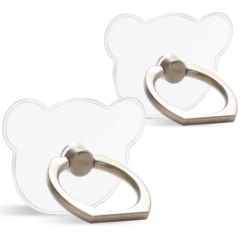 [2 Pack] Transparent Finger Ring Cell Phone Ring Holder Stand,360 Degree Rotation and 180 Degree Adjustable Finger Ring Kickstand with Polished Electroplated Phone Grip-Bear