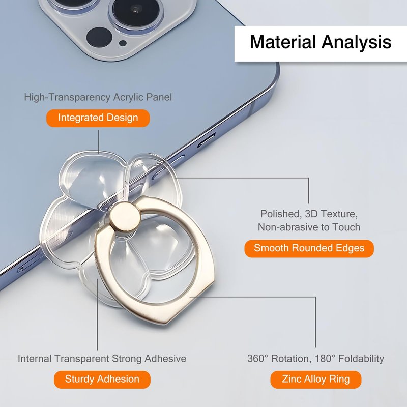 - [Sturdy and Durable Phone Ring] The phone ring holder is made of high-quality zinc alloy and sheet metal, ensuring that it is strong enough to withstand accidental drops and bumps. The surface of the holder is coated with vacuum ion plating technology, making it resistant to fading and scratches. The edges of the finger ring grip are polished for added comfort.