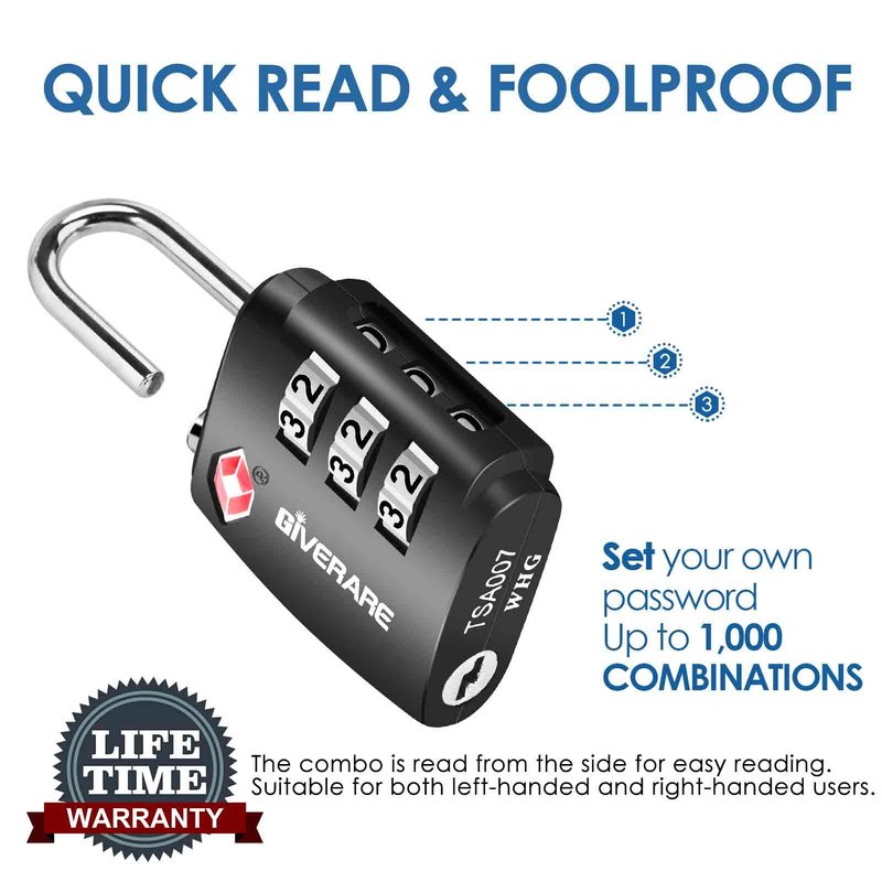 2 Pack TSA Approved Travel Luggage Locks, Combination Lock Alloy Body, Keyless 3-Digit Padlocks, Travel Sentry Accepted Compatible Padlock for Gym Locker, Golf Bag Case, Backpack, Black-by GIVERARE