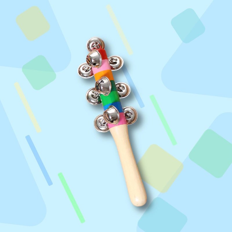 2 Pack Vivid Color Rainbow Handle Wooden Bells Jingle Stick Shaker Rattle 10 Jingle Bells Baby Kids Children Musical Toys