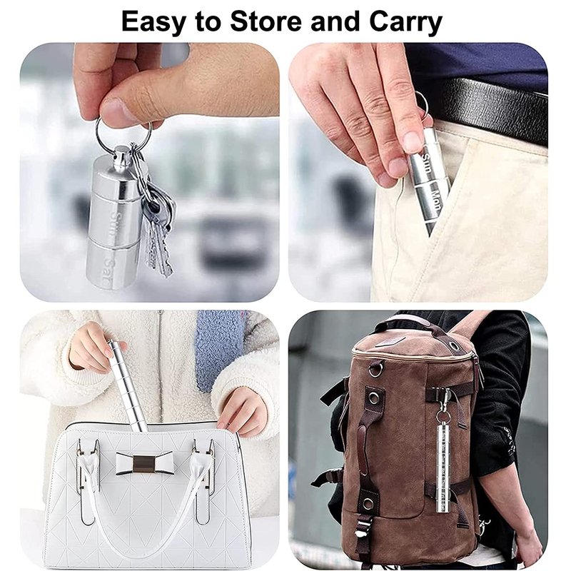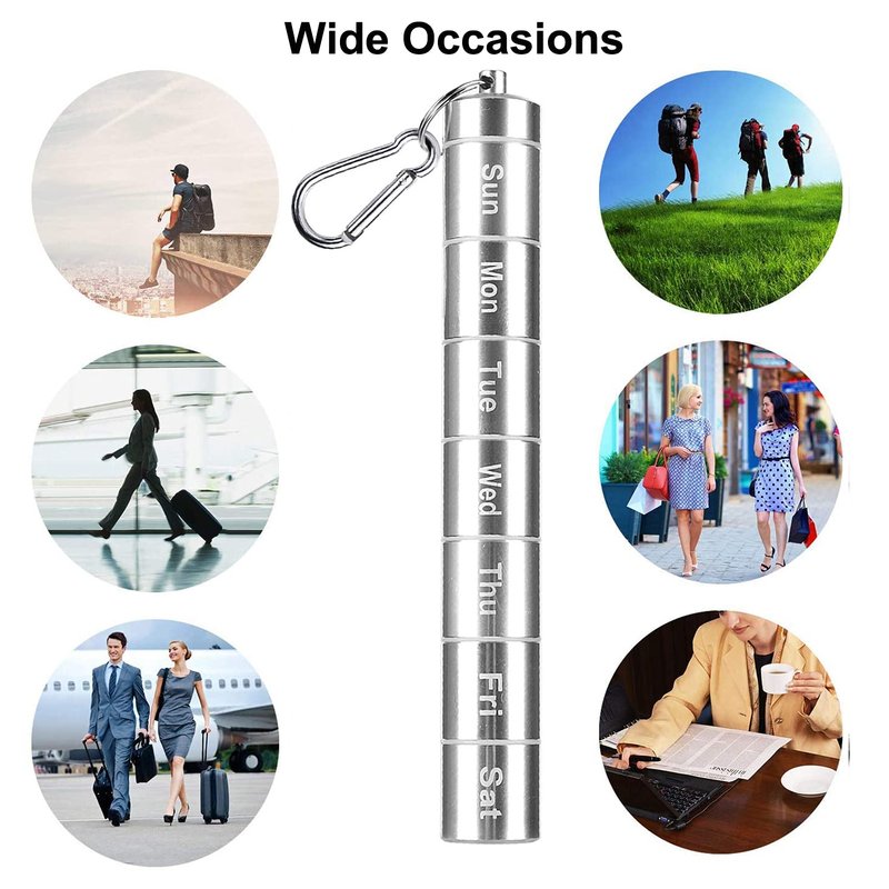 - 【PREMIUM MATERIAL】The 7 day pill holder is made of aluminum alloy, which is lightweight and sturdy, not easy to break down and can serve you long time, moreover, they are nontoxic, the pocket pill case can keep your pills clean