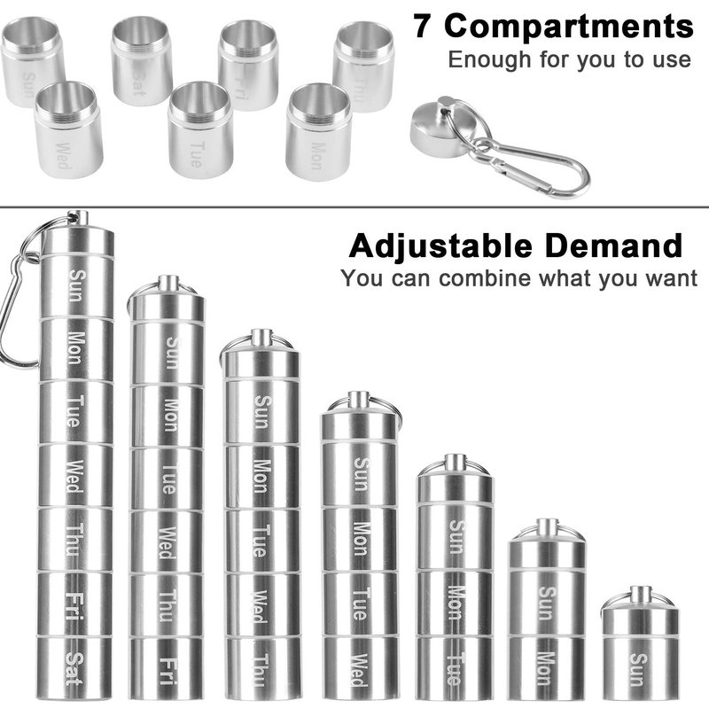 - 【PRACTIACAL DESIGN】The weekly pill box are designed with 7 compartments, allow you to put the tablets dosage which you want in each compartment, in addition, the length can be adjusted based on your own needs