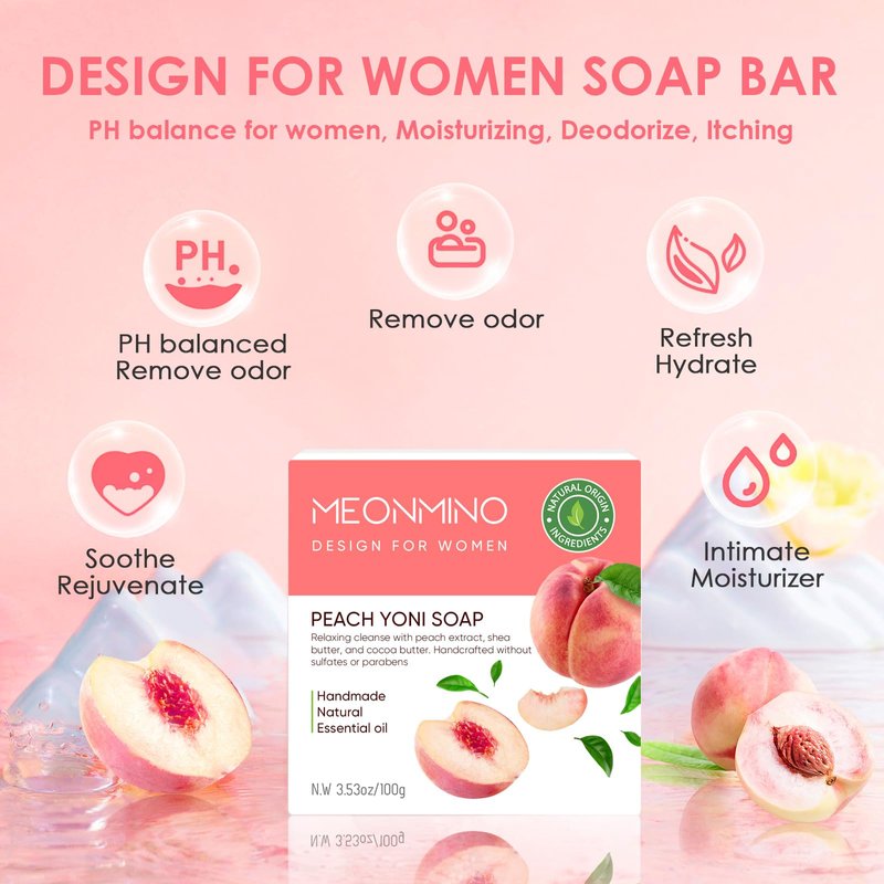 2 Pack Yoni Soap Bar for Women Feminine Wash, 100% Natural Yoni Bar Soap, Remove Odor - Moisturizing- pH Balanced & V Cleansing Bar Soap for Women, Handmade Peach Yoni Wash with Foaming Net 3.53 oz