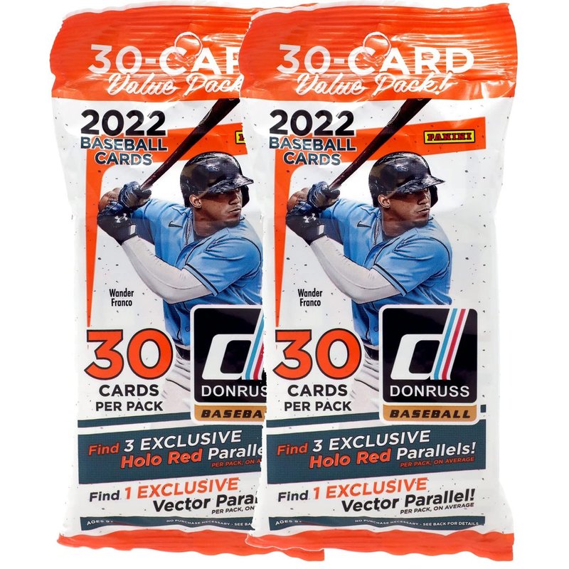 (2 Packs) 2022 Panini Donruss MLB Baseball Cello/Fat Packs - 1 Vector Parallel and 3 Holo Red Parallels Each Pack