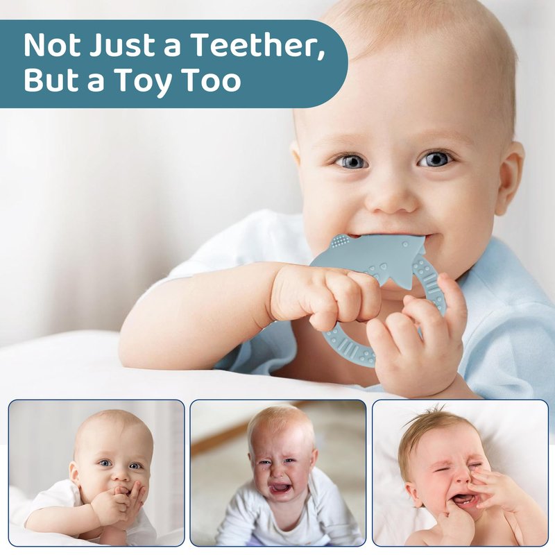 - Relieve Teething Discomfort: Our one-piece baby teething toys is soft and gentle on delicate gums, massaging the tender palate while allowing safe biting and chewing from various angles. The silicone teethers for babies offers comprehensive relief from finger-biting, sucking, and chewing. Soft silicone touchpoints provide gentle gum massage, promoting effective teething pain relief