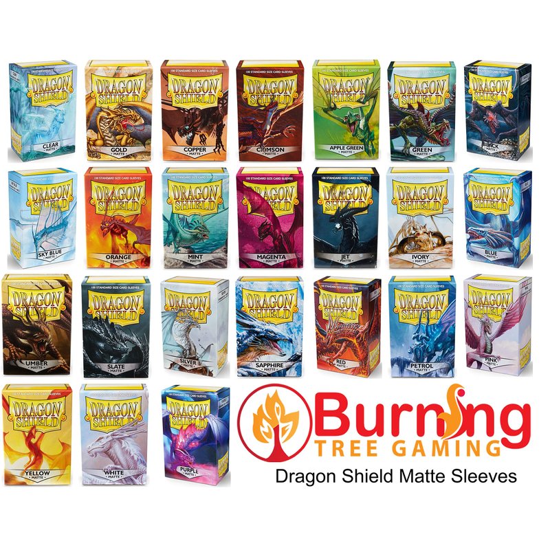 2 Pack Bundle Clear front and solid back. Matte sleeves are our popular line of textured Dragon Shield with superior handling. A perfect mix of durability and shuffle-ability. 100 sleeves per box. For cards measuring up to 63×88 mm (2-1/2 x 3-1/2 inch). PVC-free polypropylene sleeves, no acid. Archival safe. 120 μm quality thickness. Sturdy cardboard box fits 75+ sleeved cards. Box lid has a label for your personal use.