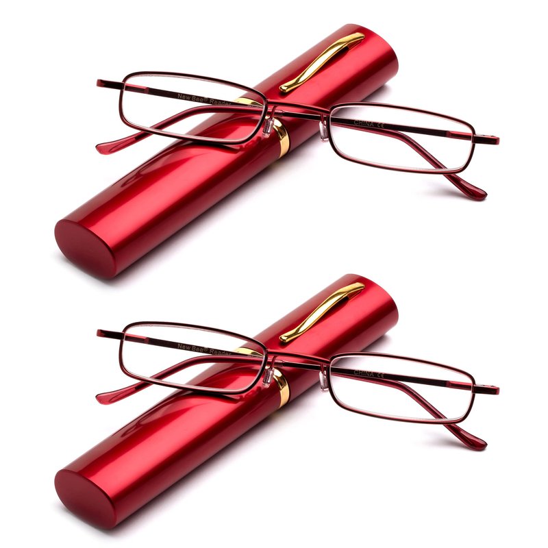 - The ultra slim compact color matching tube readers that fits anywhere you go! A classic pair with a comfortable fit for both men and women, simple and stylish frame design for all ages. Compact aluminum case makes it easy to carry everywhere. 12 different colors options sure match your outfits.