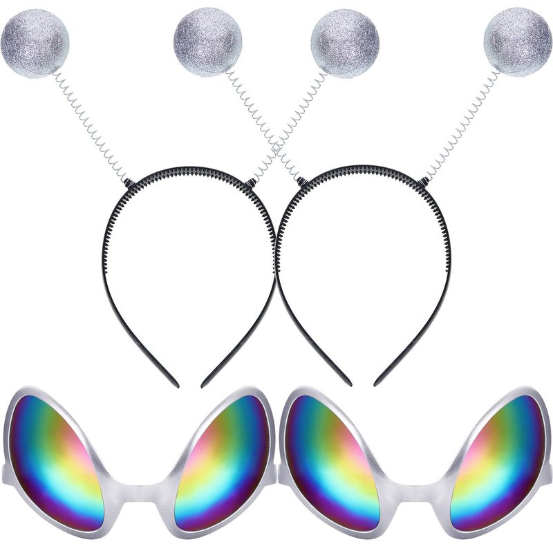 - Quantity information: you will get 2 pairs alien glasses with rainbow color lens, 2 pieces antenna headband boppers, the combination of headband and glasses allows you to stand out from the crowd, able to meet your party dressing needs