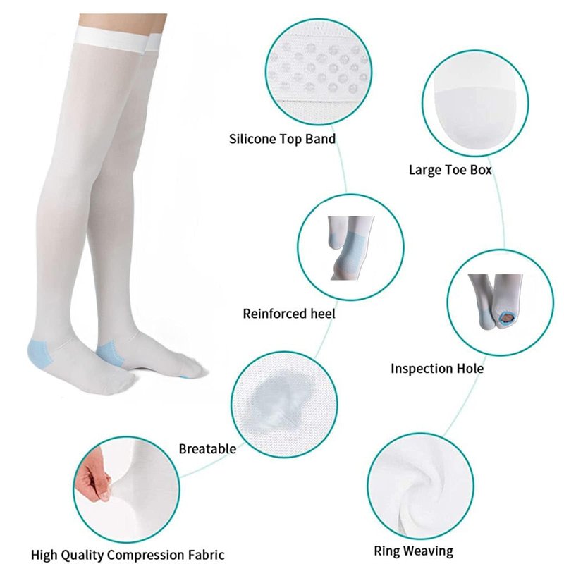 - 【SHOP WITH CONFIDENCE】Great value 2 pairs of thigh high ted hose compression stockings. Use the size chart on the picture as a reference. If your measurements are between sizes, go to a bigger size