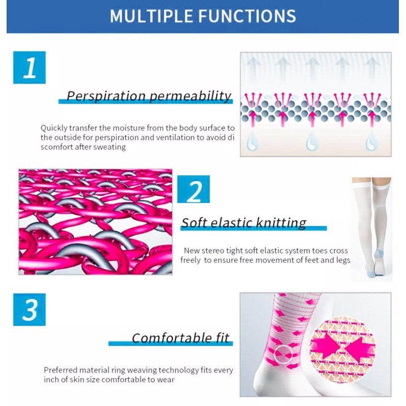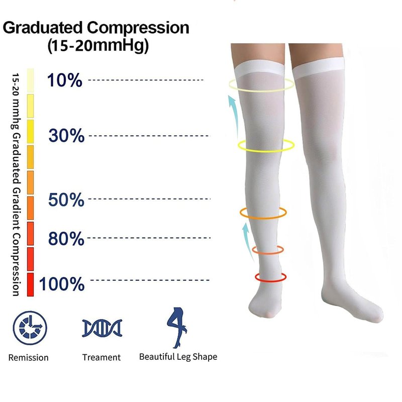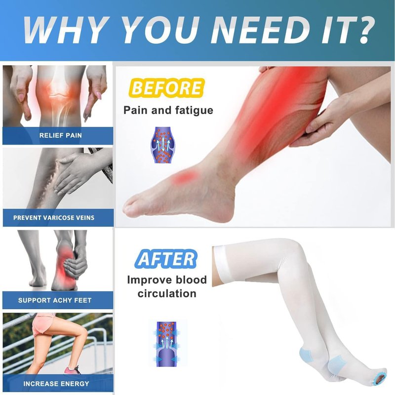 - 【SAY GOODBYE TO PAIN】This thigh high compression stockings encourage fluid flow in your circulatory and lymphatic system. relieves your ankle swelling, leg cramping and foot fatigue