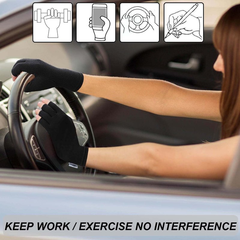 - [Open Finger Design] - Arthritis Gloves, Perform everyday tasks, using phone, typing, cooking and more without interference. Opening is set at optimal length to provide perfect balance between beneficial compression support and finger mobility.