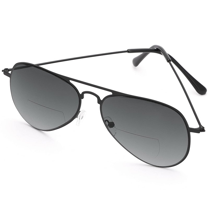 - Perfect All Around - These stylish frames have the classic aviator look, and have magnifying corrective bi-focal lenses.Designed so the bifocal line isn’t visible when being worn. Seamless & "seenless" transition from shades to readers.classic color will go with any wardrobe choice or style. Casual or dress - these shades suite anything.