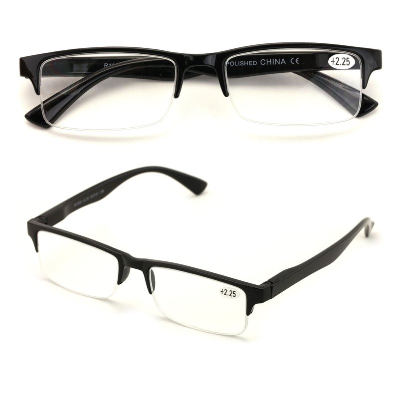 - 2 Pairs of Stylish Lightweight Half Rim Rectangle Reader - Spring Hinge for Comfortable Fit