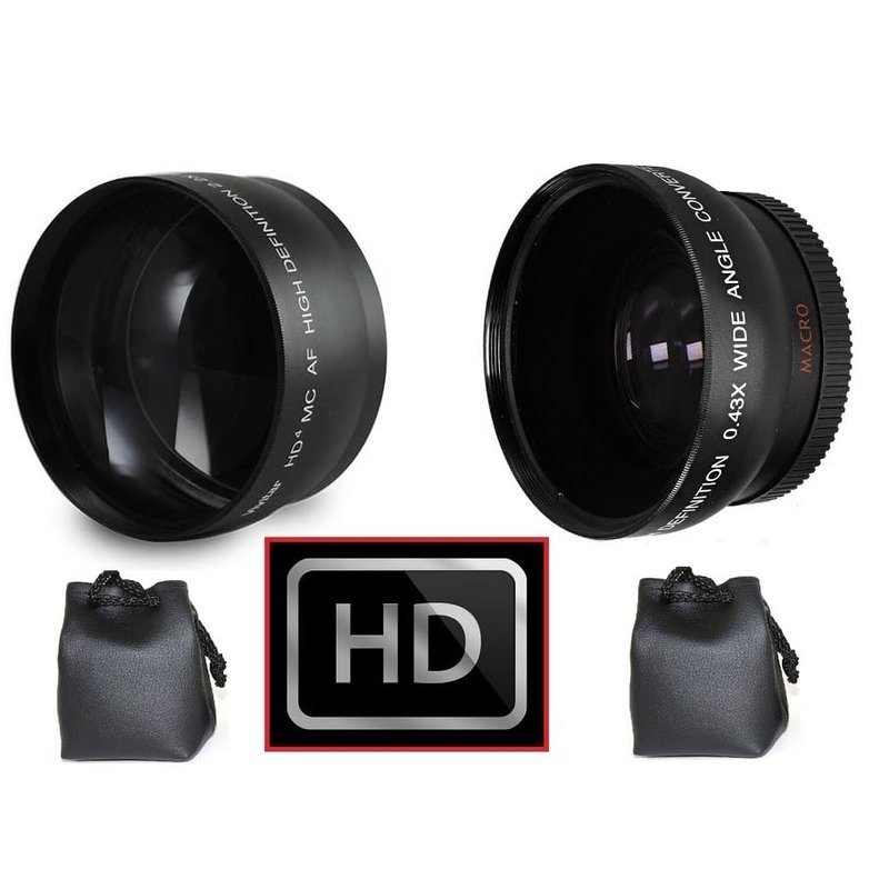 Pro HD Wide Angle Lens with Macro and 2.2x HD Tele Converter (Tele Photo) Lens Set for Canon Vixia HF M500 Camcorder Package Includes: Wide Angle Lens: Wide Angle Lens with Macro Front and Back Lens Covers Carrying Pouch Ring Adapter 2.2x Tele Converter Lens: 2.2x Tele Converter Lens Front and Back Lens Covers Carrying Pouch This is a 0.43x Pro HD wide angle lens with MACRO & a 2.2x Pro HD Tele Converter Lens