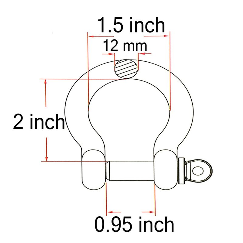 - Size: 2 Pcs 1/2"(12mm) Screw Pin Anchor Shackle, one-way screw, bolt design, more robust, easy and convenient to use, Maximum Opening Width: 1" (25mm), Working Load Limit: 1400kg / 3086lbs, Breaking Load: 5500kg / 12125lbs.