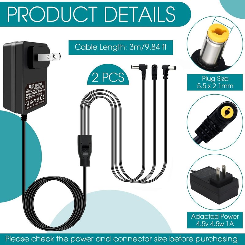 2 Pcs 4.5V Lemax Power Adapter with 3 Output Jacks Compatible with Lemax Lighted Accessory 94566 94563 94564 94565 74295 74269 84428 Christmas Halloween Village Lights Micro Lighting Building Decor
