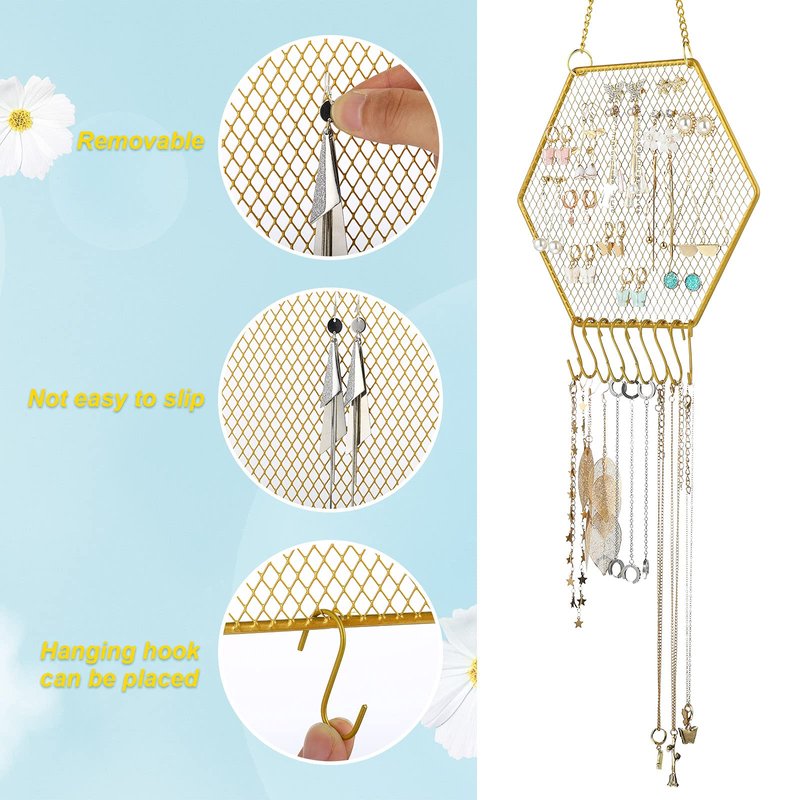 - Size details: our hanging hexagon earring stand comes in a classic hexagonal shape with approximately 10 cm/ 4 inches sides and an overall openwork diamond grid design, the proper size for hanging on the wall of your dresser, easy to coordinate with other jewelry displays or furniture, making it easy to notice your earring collection