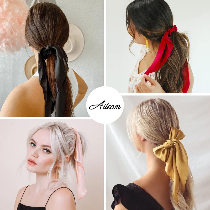 Aileam Bow Hair Scrunchies Elastic Hair Scarf Ponytail Holder for Women and Girls
