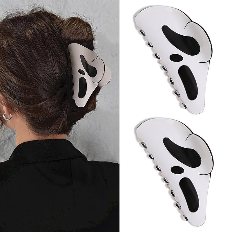 2 Pcs Halloween Hair Claw Clip, Spooky Ghost Face Hair Clip Creative Skull Hairpin Funny Ponytail Clip Scream Grimaces Scary Styling Shark Clip Hair Accessories Halloween Styling