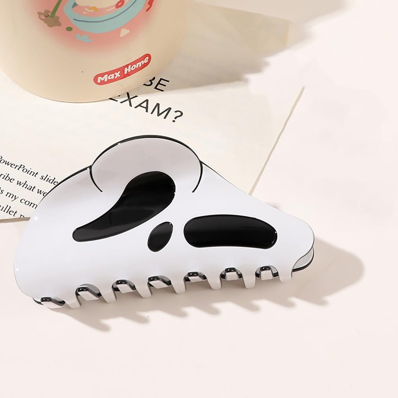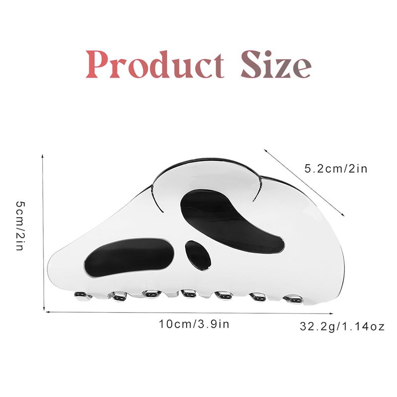 Add a touch of spooky fun to your Halloween hairstyle with these 2 Pcs Halloween Hair Claw Clips! Featuring a big mask ghost face design and a funny, scary grimace, these ponytail clips are perfect for creating a frightfully fabulous look. Made of durable materials, these hair accessories will keep your hair securely styled all night long. Whether you're dressing up as a ghoul or just embracing the Halloween spirit, these hair claw clips are a must-have accessory. Measuring approximately 4-5 inches (10-12 cm) in size, they're suitable for both kids and adults. Embrace the spooky season with these unique and playful hair clips!