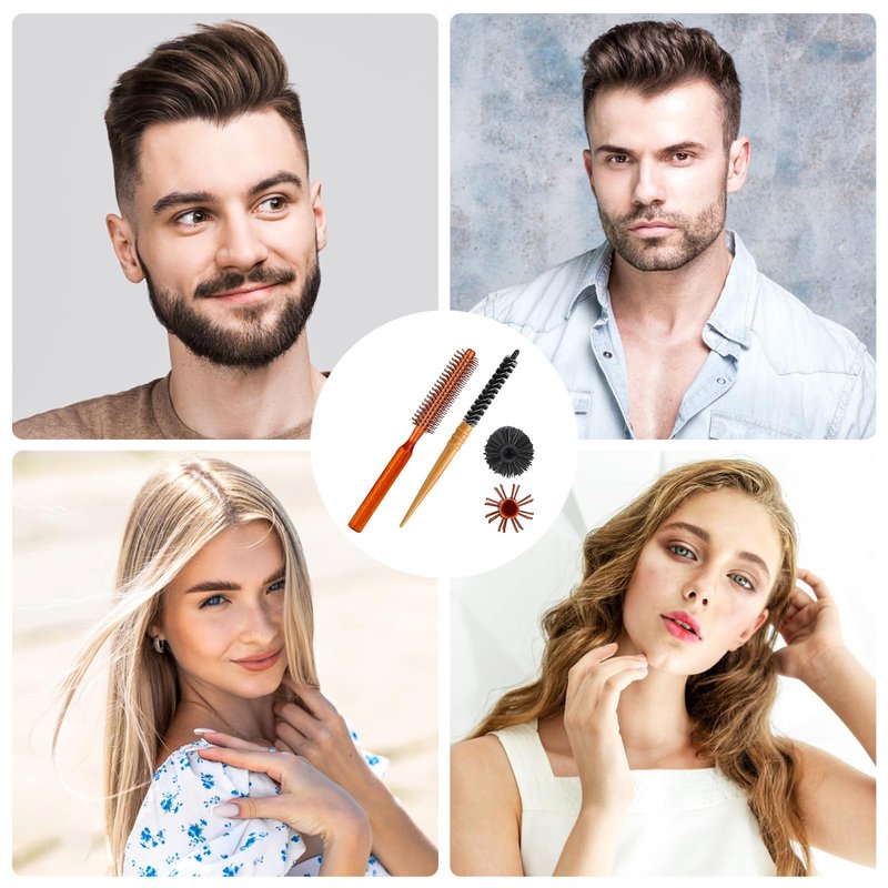 2 PCS Mini Round Curl Brush Set - Portable Bristle Brush Rollers for Styling Thin Hair, Short Hair, Bangs, Blow Drying, Lifting, and Men's Beard