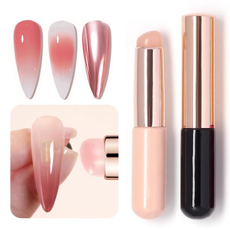2 Pcs Silicone Nail Brush Ombre Nail Brush, Reusable Silicone Head Acrylic Nail Gradient Painting Brush, Chrome Nail Powder Applicator Brushes for Resin Nail Art Tools