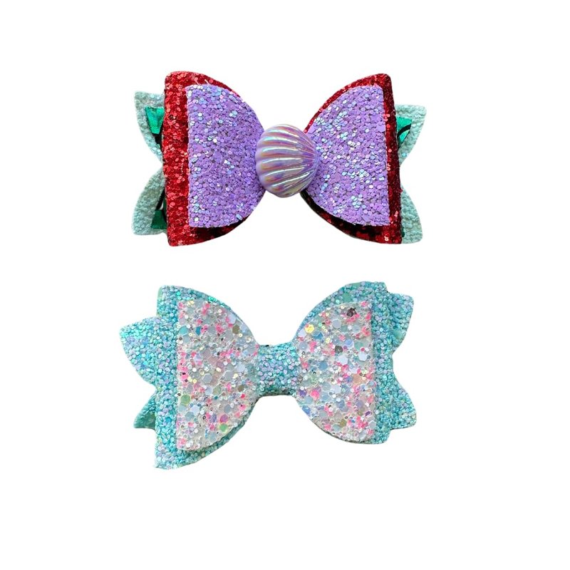 2 Piece Princess/Mermaid Glitter Leather Hair Bow Set/Princess Costume/Cosplay Hair Bows by Inspired Bows