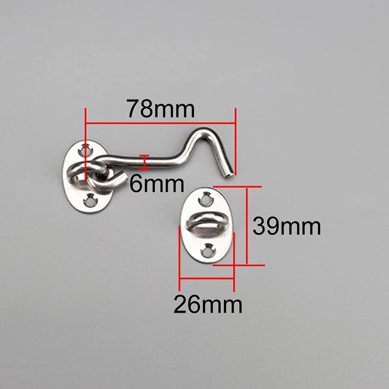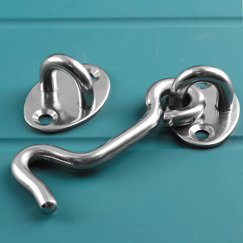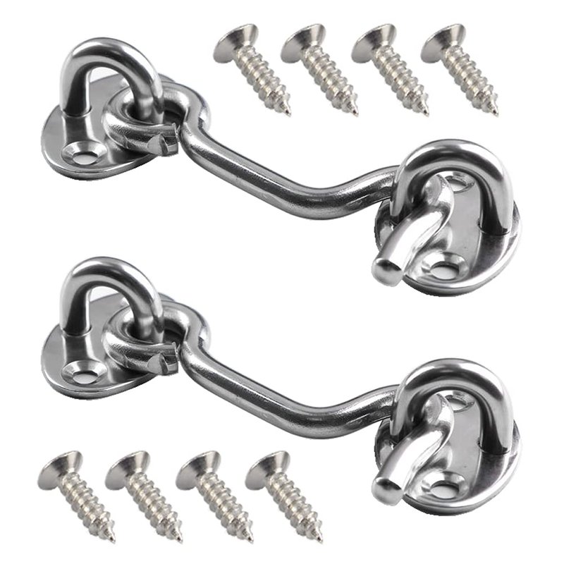 2 Pieces 3" Hook and Eye Latch with Screw Stainless Steel Window Lock Cabin Hook Barn Door Latch Hook & Eye Door Latch Eye Latch for Window Gate Shutters Barn Door, Silver-Tone