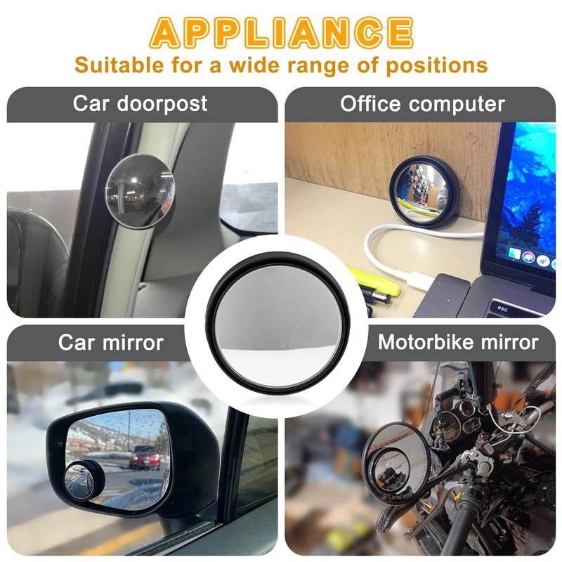 - FITS 𝗔𝗟𝗟 𝗩𝗘𝗛𝗜𝗖𝗟𝗘𝗦 - Whether you drive a scooter or a large truck, you need to avoid blind spots. Our mini mirrors fit a wide range of vehicles: motorcycles, cars, SUVs, trucks, buses, and even boats.