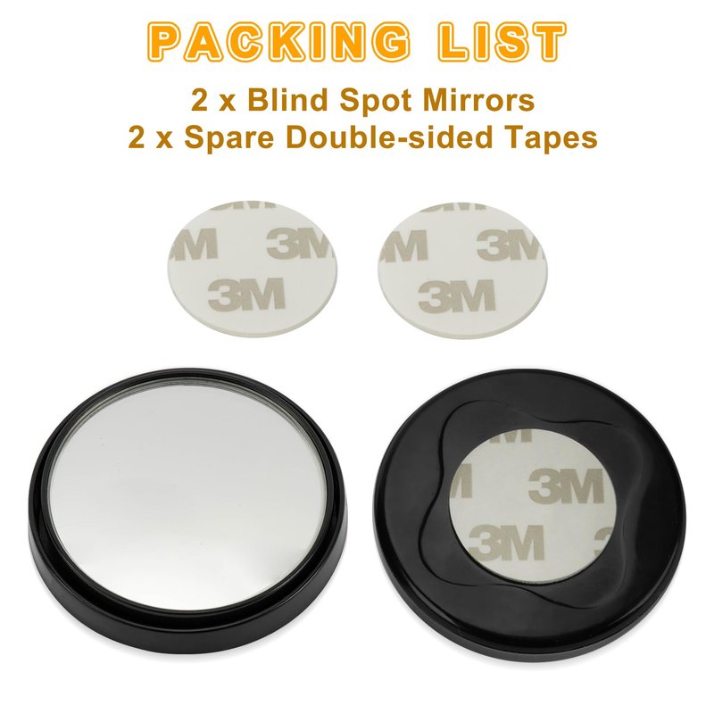 - DESIGN - The mirror is convex, Frame design, no metal in the whole body, which can be waterproof and rustproof. Double sided adhesive on the back to attach to the mirror of the car mirror.