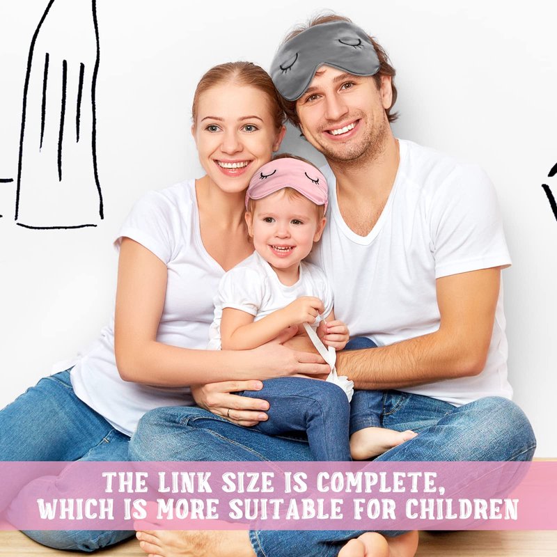 2 Pieces Cute Sleep Eye Masks for Kids Silk Sleep Eye Cover Cute Lightweight Adjustable Eyeshade Mask Satin Night Eyeshade Covers with 2 Pieces Storage Bag(3-12 Years,Gray, Pink)