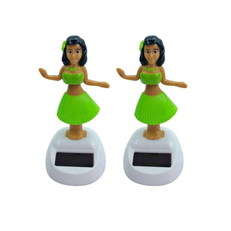 Bring a touch of fun and energy to your car or home with these 2 Pieces Green Solar Powered Dancing Hula Girl Dashboard Decorations! These adorable swinging bobbleheads feature solar-powered motion, bobbing and grooving to the rhythm of the sun. At 4 inches tall, these hula girl figurines make for delightful dashboard companions on your drives or lively home decor accents. Crafted with attention to detail, these dancing toys showcase vibrant green grass skirts and floral detailing. Powered by a solar panel, they'll groove endlessly without batteries. Liven up your daily commute or add a playful vibe to shelves and windowsills with these charming solar dancing figurines - a unique blend of auto interior accessory and science kit toy!