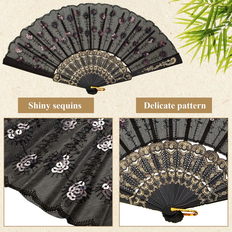 - Practical gift: the sequin fabric folding fans can be served as nice gifts for birthday, New Year's Day, Valentine's Day, Mother's Day, Father's Day, Halloween, Thanksgiving Day, Christmas and more, portable cooling tool in hot summer and elegant costume accessory in daily