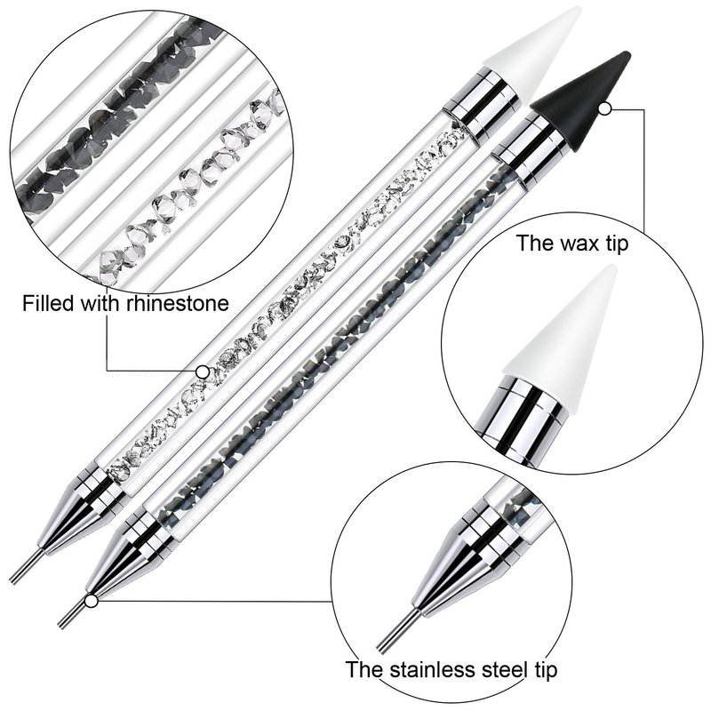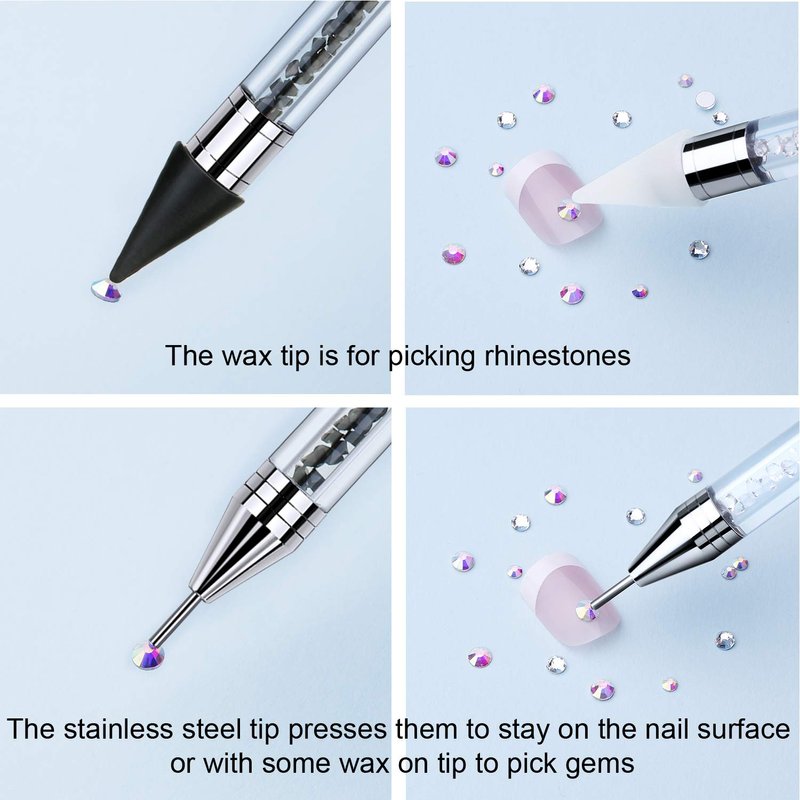 - Double head rhinestone picker: the wax tip is for picking rhinestones and the stainless steel tip presses them to stay on the nail surface or with some wax on tip to pick gems, meet different needs during your crafts