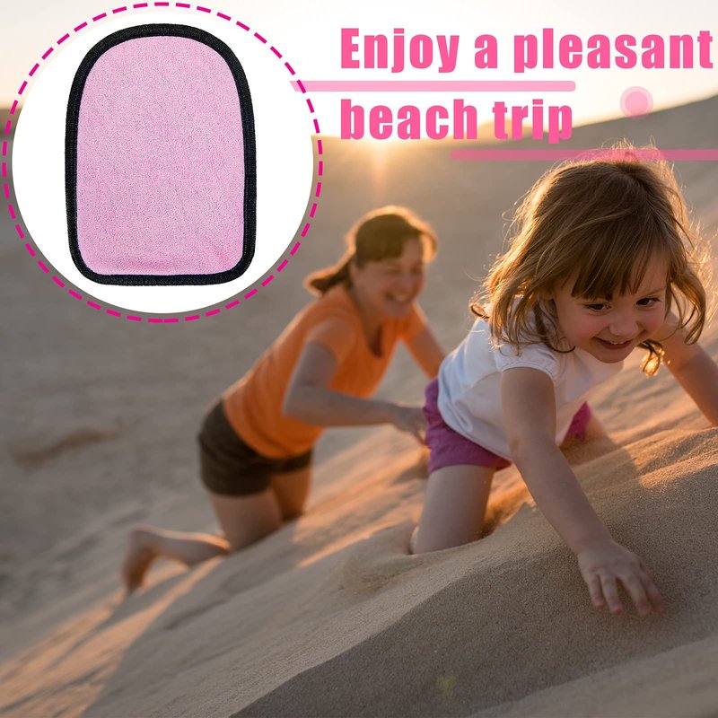 2 Pieces Sand Wipe Off Mitt Beach Sand Cleaner Soft and Skin Friendly Cotton Towel Help Parents Clean Sand from Children's Skin Mitt Pack for Surf, Ocean and Lakeside Recreation (Pink)