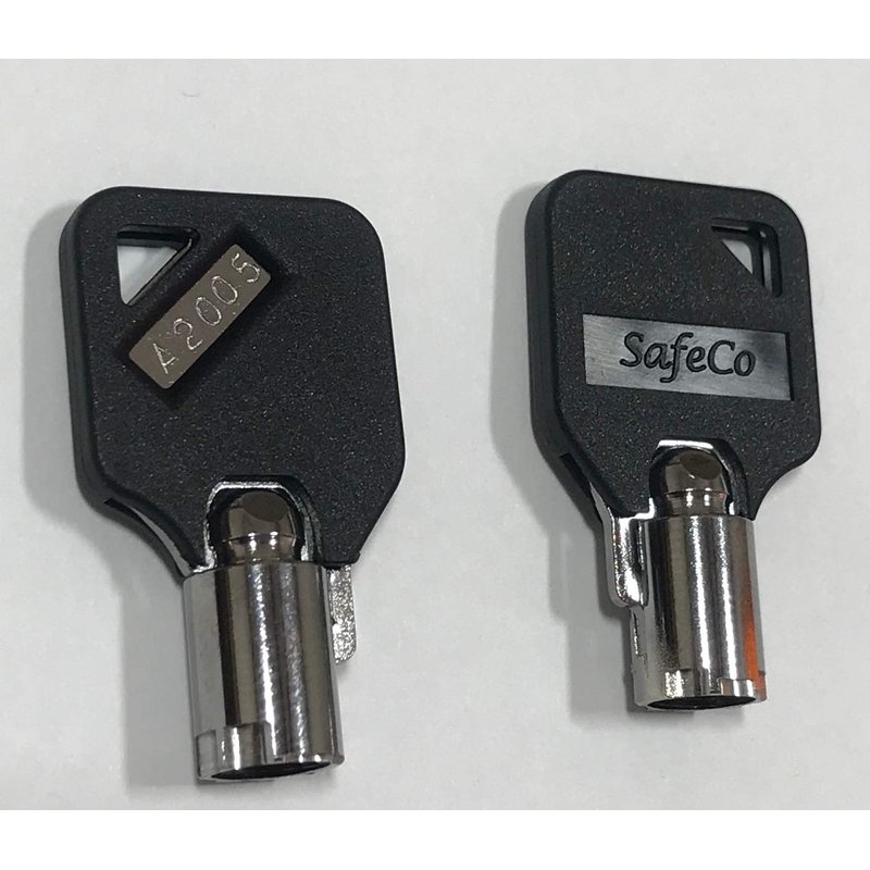 2-Keys made to the code that you provide to us. Most key codes are stamped on your original keys or on the face of the lock itself. These are for code series A2001 thru A2020 only. SafeCo Brands never sells copies or duplicates of keys. These keys are made to order from the key code that you provide. Made to original factory specs, no copies here. SafeCo Brands never sells the soft brass keys that wear down quickly, only steel keys with Black Tops as shown in the listing. SafeCo Brands always has our logo printed on our products. Don't get ripped off. Insist on SafeCo Brands for top quality products.