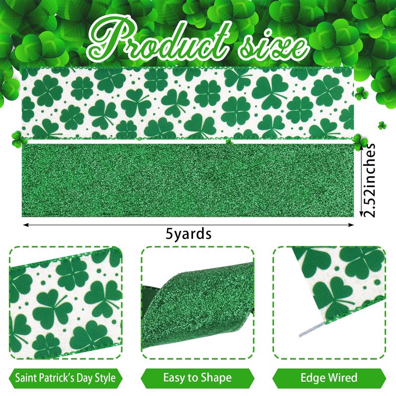 - 『Sturdy Quality Fabric Material』: St. Patrick's Day fabric woven decorative ribbons use non-fading, durable, well knitted fabric burlap material and glitter powder, bright color, strong, durable, non-toxic, non-allergic and not easy to break. Reusable and can be used many times after washing. It supports hand washing, machine washing and will not fade easily. You will receive 2 ribbon rolls, 2.5 inches wide and 5 yards long for each.