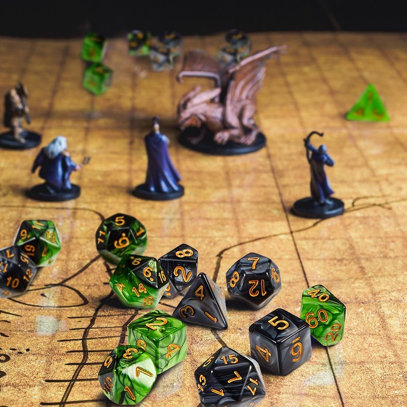 2 Set 11 Dice Polyhedral Dice Set Multisided Dice Set Smooth Touch with Drawstring Bag Compatible with RPG MTG Table Game Dice, 22 Pieces (Green, Black)