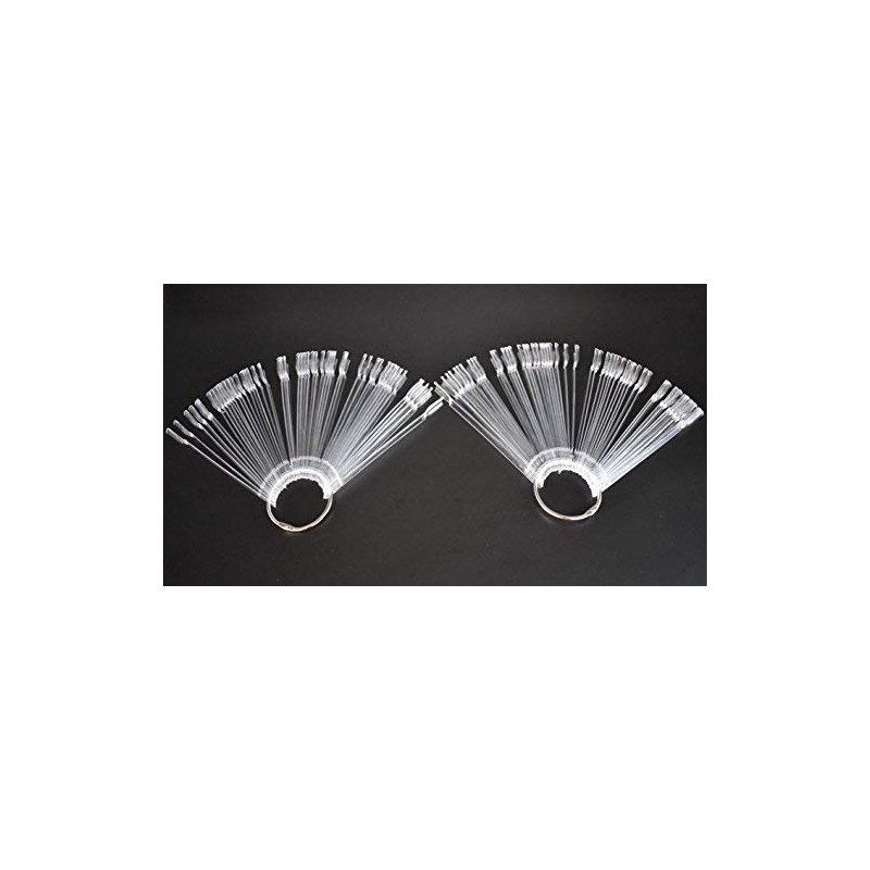 2 Sets 100 Tips Fan Shape Transparent Plastic Nail Art Tips Display Polish Board Display Practice Sticks with Metal Split Ring Holder
