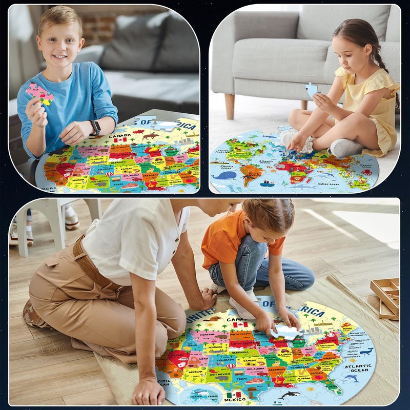 - Interesting World and US Map:We have made the world and the United States into puzzle pieces, and integrated landmarks, unique folk culture, various animals and food into the puzzle pieces. Lead children into the interesting world of geography, allowing children to give full play to their imagination and creativity, and learn new things during the puzzle process.